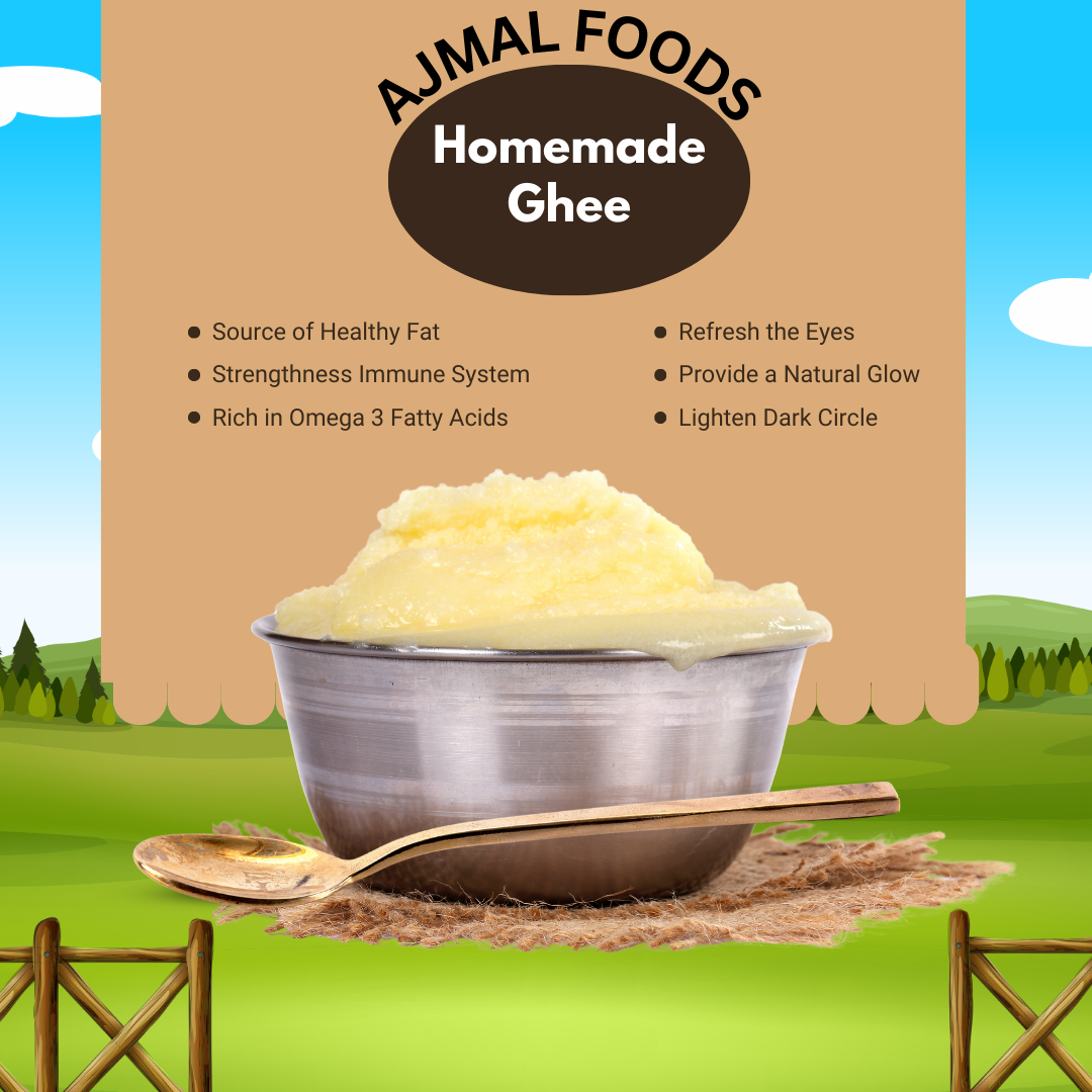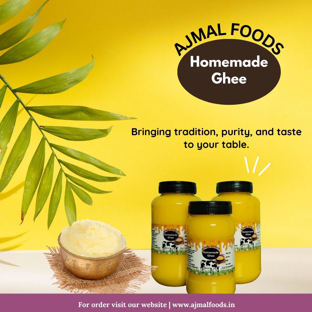 Born out of a deep respect for nature and traditional cooking methods, Ajmal Foods was established to offer 100% natural, preservative-free ghee made from pure cow’s milk. Every jar of our ghee is prepared with dedication, ensuring that the rich aroma, golden texture, and wholesome nutrition remain intact.